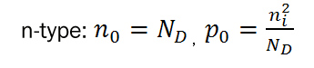 where ni is the intrinsic carrier concentration and n0 and p0 are the electron and hole equilibrium carrier concentrations.