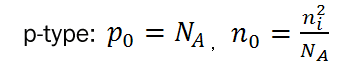 Using the Law of Mass Action above, the majority and minority carrier concentrations are given as: