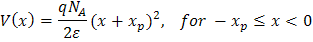 ε0 is the permittivity in free space, and εs is the permittivity in the semiconductor and -xp and xn are the edges of