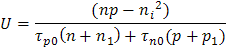 where n1, p1 are the numbers of carriers in recombination sites, n0, p0 are the electron and hole concentrations in equilibrium and τp0 and τn0 are the minority carrier lifetimes for holes and electrons.